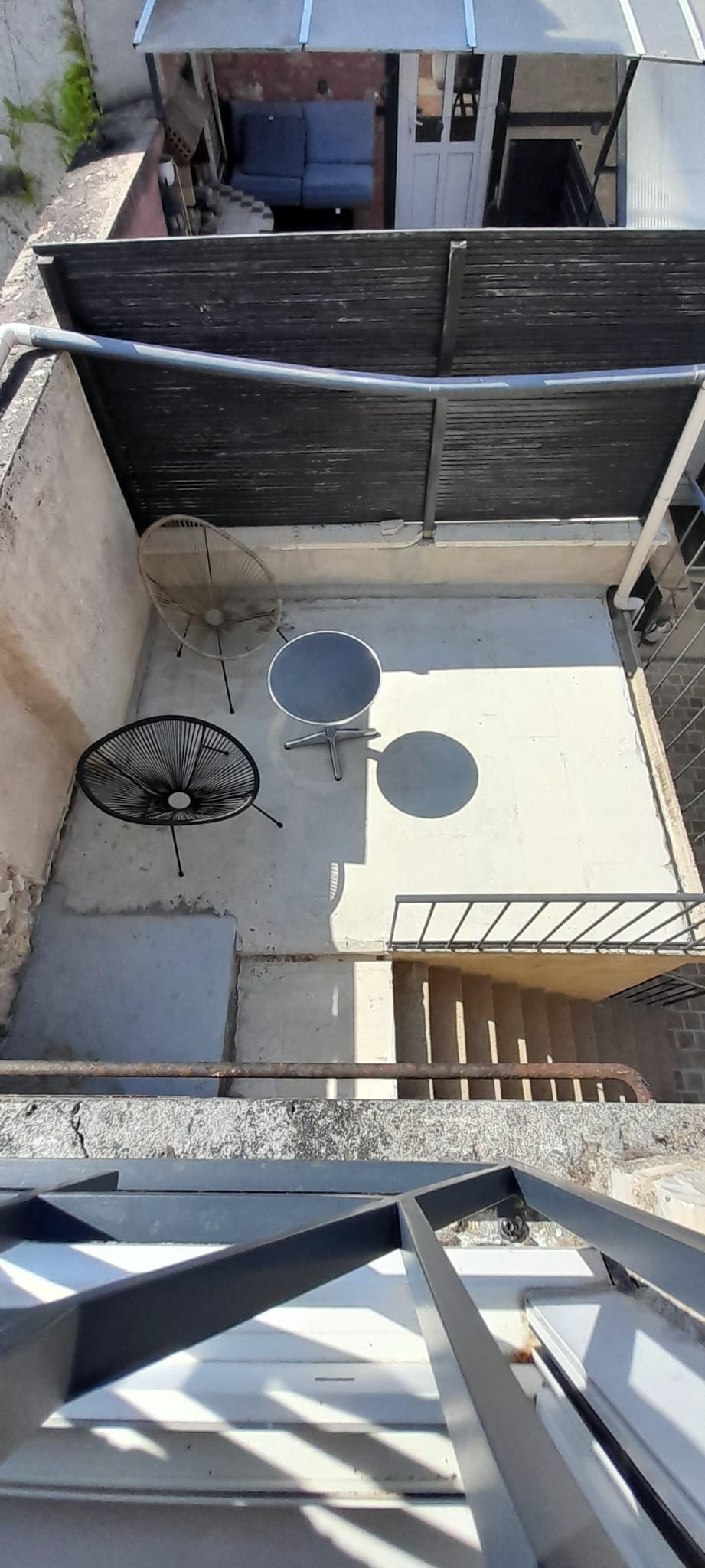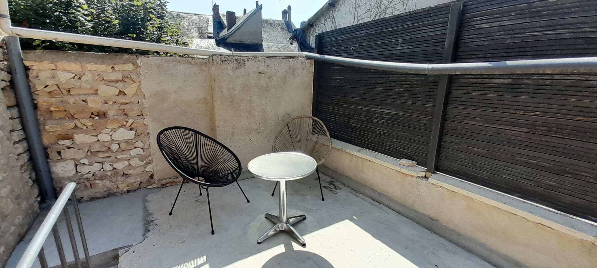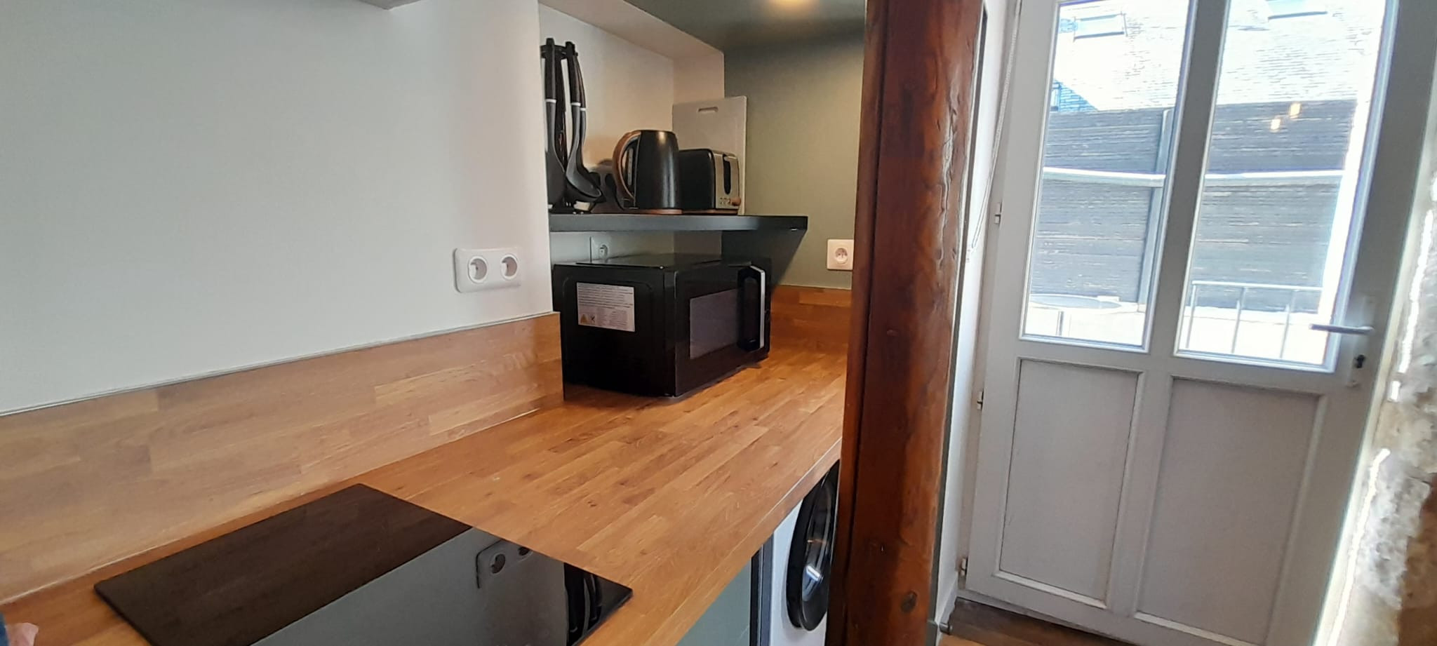 Un espace extérieur avec terrasse et mobilier de jardin permet de profiter de moments de détente en plein air. Le studio est idéalement situé dans un environnement charmant au cœur de la ville, offrant un cadre à la fois pratique et reposant.