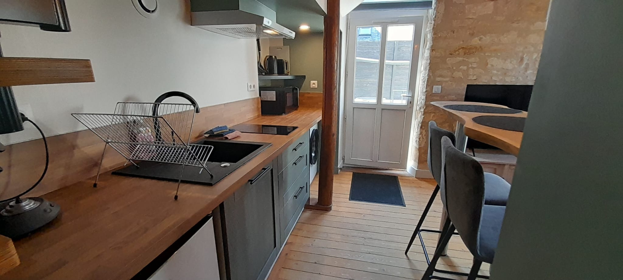 - Cuisine équipée (machine à café, bouilloire, four, four micro-onde, vaisselles ect ...)
