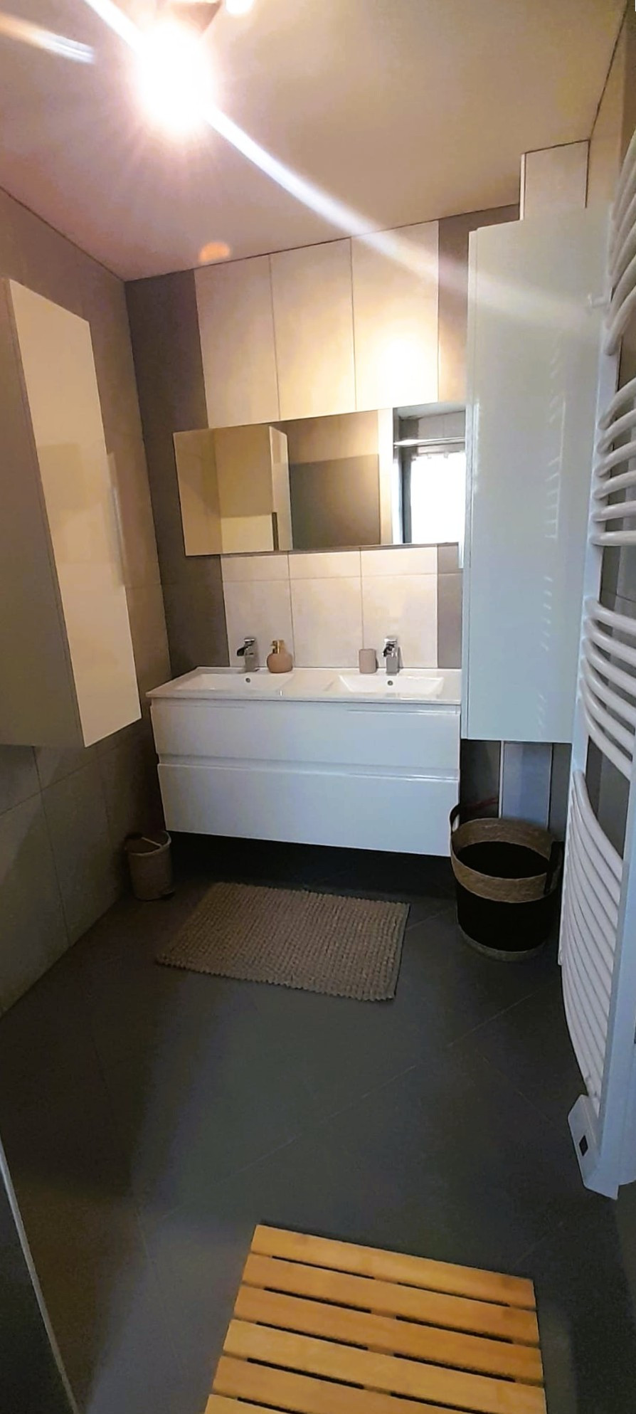 La salle de bain avec douche offre tout le confort nécessaire. (WC séparés) Le logement est chauffé par des radiateurs électriques et bénéficie d'une connexion WiFi gratuite. Deux téléviseurs sont également à disposition pour vos moments de détente.