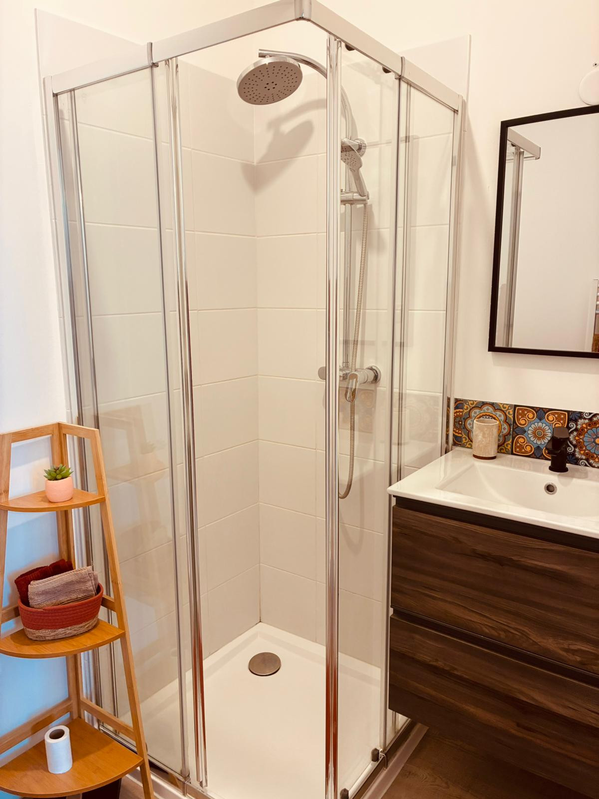 L'appartement dispose d'une chambre confortable avec un lit double qui garantit un repos optimal. La salle de bain privative avec douche permet de se détendre après une journée bien remplie. La cuisine américaine,équipée, vous permettra de préparer de délicieux repas : plaque vitrocéramique, réfrigérateur, machine à laver, machine à café, micro-ondes, vaisselle complète, grille-pain et bouilloire sont à votre disposition.
