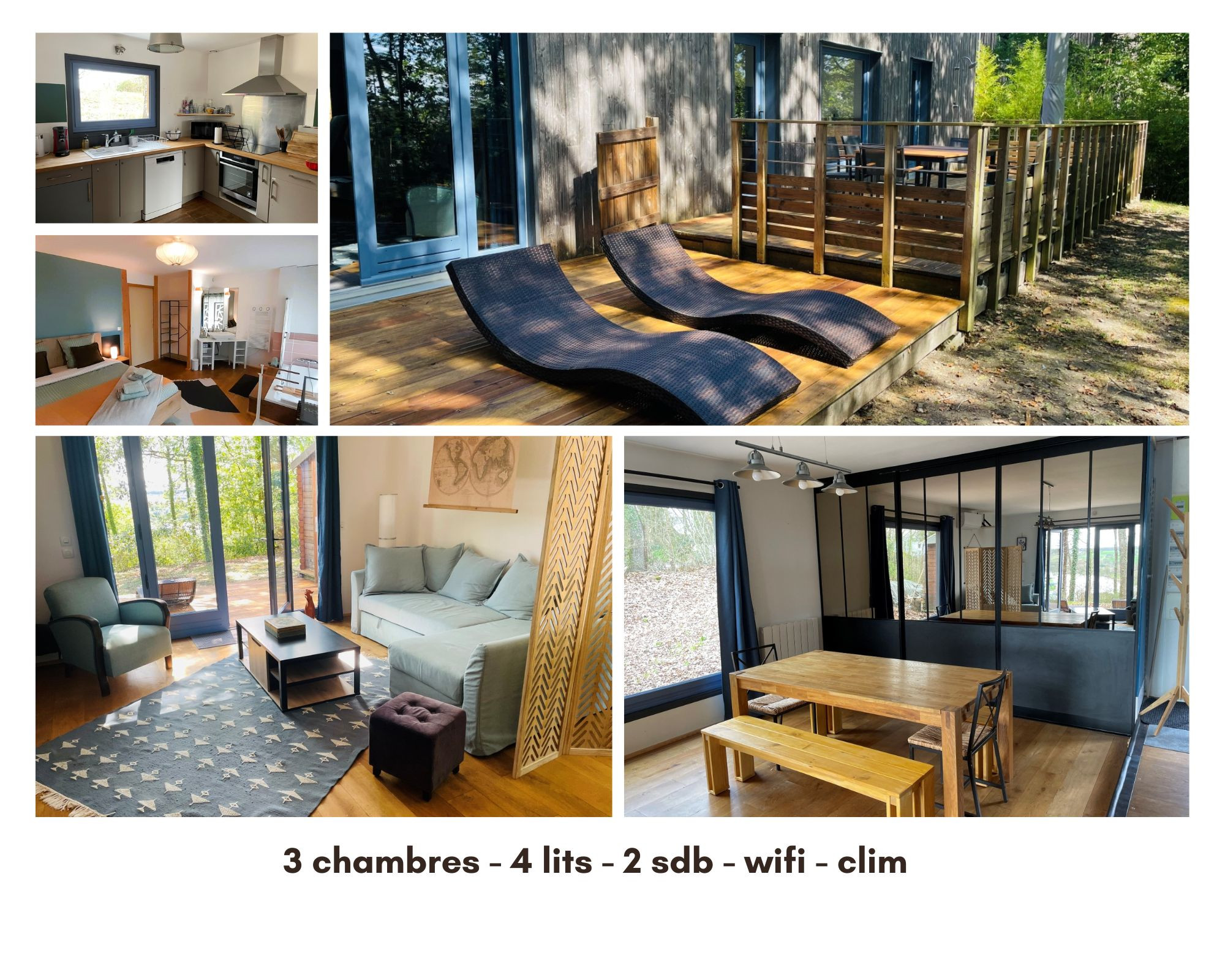Découvrez notre charmant lodge pour 6 personnes, idéalement situé à seulement 20 minutes du célèbre Zoo de Beauval, au bord d'un lac paisible et entouré d'une forêt verdoyante. Que vous souhaitiez passer des vacances en famille, vous ressourcer ou simplement profiter du calme, notre lodge est l'endroit parfait pour vous ! Ses 3 chambres, 2 salles de bain , sa cuisine équipée et son séjour lumineux vous ravirons. - Vue imprenable sur le lac : Réveillez-vous chaque matin avec une vue apaisante sur les eaux scintillantes.- Cadre naturel exceptionnel : Profitez de la tranquillité des arbres et de la faune environnante.- Confort moderne : Notre lodge est entièrement équipé pour accueillir confortablement votre famille.- Activités en plein air : Randonnées, accro-branches, pêche, pique-niques au bord de l'eau… des souvenirs inoubliables vous attendent !Réservez dès maintenant pour vivre une expérience unique en pleine nature. Offrez à votre famille des moments de partage et de détente loin du tumulte quotidien.(notez que des travaux d'aménagement du lac sont prévus en 2025, mais cela n'impactera pas votre confort au lodge) Se recentrer sur le naturel, le calme, tout en bénéficiant de la vue sur le lac, c’est ce que nous vous proposons ici, dans cette maison ossature bois, au milieu des arbres.L’architecture de cette maison s’intègre dans un cadre naturel, sensible et à préserver. Chaque détail est pensé pour votre bien-être : que vous vous détendiez sur la terrasse ou que vous profitiez de la tranquillité de la maison, vous vous sentirez immédiatement chez vous.Adeptes du yoga : la terrasse n'attend que vous !Plongez dans un havre de paix où le naturel et le calme se rencontrent, tout en profitant d'une vue imprenable sur le lac, dans notre maison à ossature bois, nichée au cœur des arbres. Conçue pour s'intégrer harmonieusement dans ce cadre naturel sensible, chaque détail de cette maison est pensé pour votre bien-être. Que vous choisissiez de vous détendre sur la terrasse ou de savourer la tranquillité des lieux, vous vous sentirez immédiatement chez vous. Et pour les adeptes du yoga, la terrasse n'attend que vous pour des séances revitalisantes en pleine nature !De plus, le village remarquable de Montrésor, avec son charme pittoresque, se trouve à seulement 2 km, tandis que la majestueuse forteresse royale de Loches est à 16 km, offrant ainsi des opportunités d'exploration enrichissantes. "Pour accéder au logement, vous emprunterez un escalier en bois comportant quelques marches. À l'intérieur, une marche sépare le salon de la cuisine."