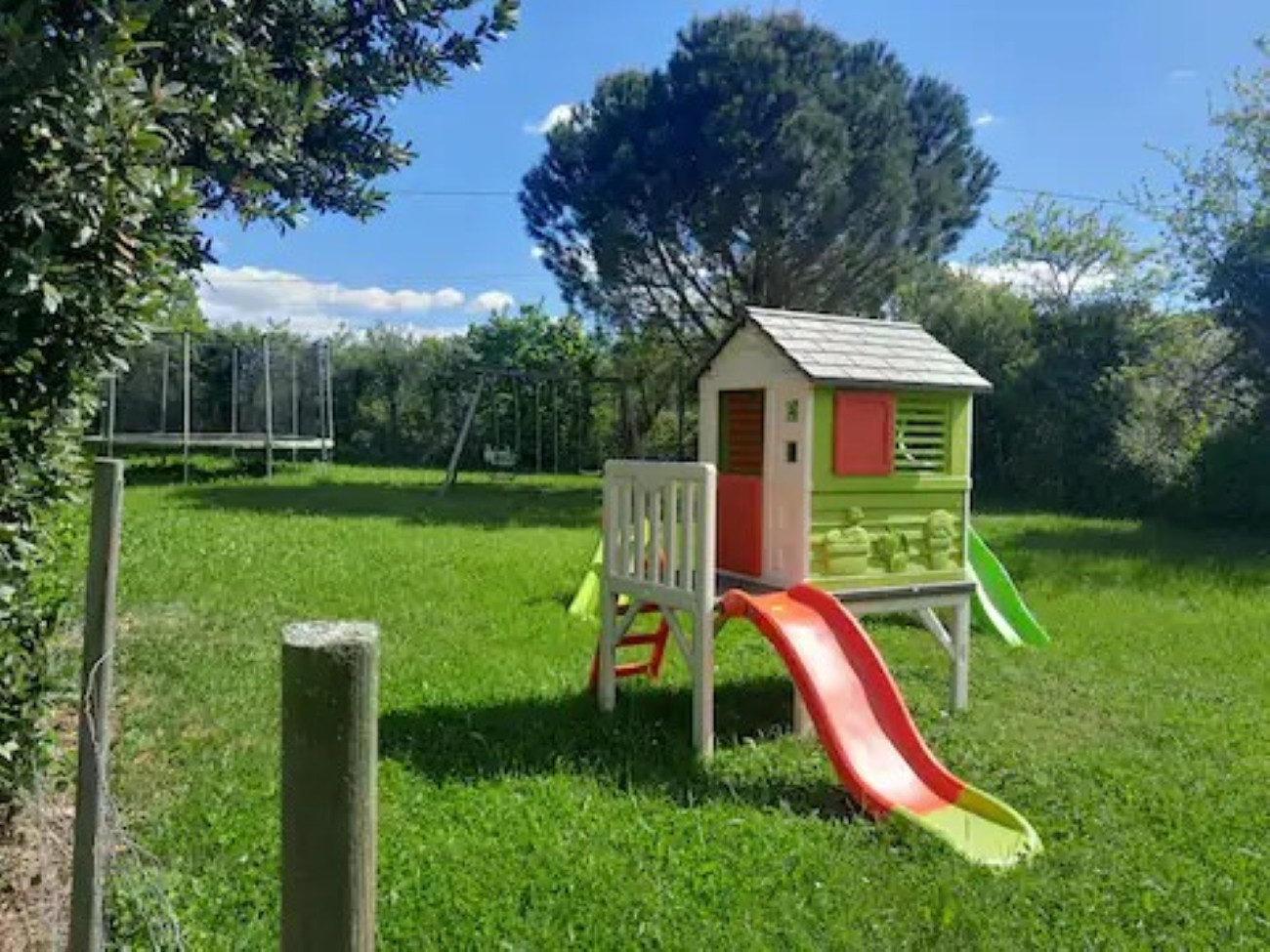 Vous pourrez également profiter des espaces extérieurs, avec un jardin privatif, du mobilier de jardin, un barbecue géant, une cuisine d'été avec bar, des sanitaires et douche extérieurs et une terrasse pour vos moments de détente. Une aire de jeux sécurisée pour vos enfants est mise a disposition.