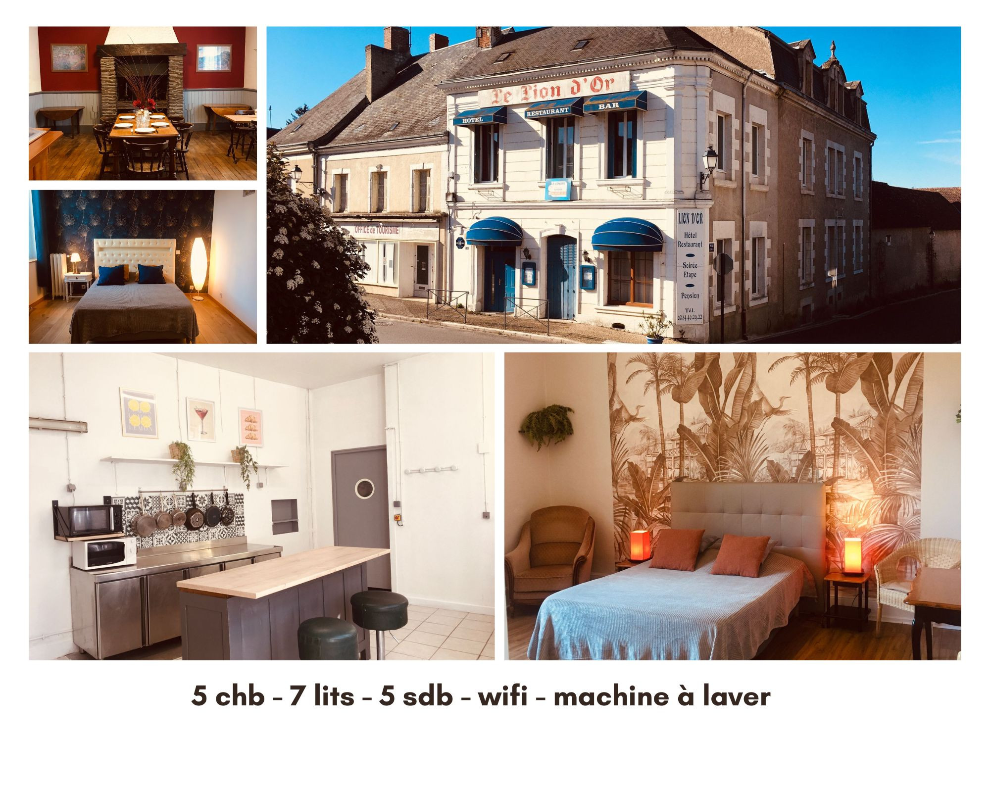 Galilé Conciergerie vous souhaite la bienvenue dans cet ancien relais de Poste puis hôtel (Le Lion d'Or) à Ecueillé. Vous serez confortablement installés grâce à ses 5 chambres (3 avec lit double, et 2 avec lit double + canapé-lit double). Nous vous proposons 2 lits d'appoint en supplément pour une capacité totale de 15 couchages. Chaque chambre a sa propre salle de douche privée, WC séparés, télévision et plateau bouilloire. Vous aurez accès à la salle à manger au salon avec tv, à la cuisine et aux extérieurs en toute autonomie. Le logement se trouve à 500m du magasin « Ecomarché » ou vous trouverez du carburant 7/7 H24, à 20 minutes du « zoo de Beauval » ou encore du château de Valençay. Découvrez les environs grâce au petit train du Bas Berry. Pour votre confort, vous disposerez d'un lave-linge, d'un accès Internet (wifi), d'un sèche-cheveux, d'un parking extérieur, d'une télévision dans chaque chambre. La cuisine est équipée d'un réfrigérateur, d'un four micro-ondes, d'un congélateur, de vaisselle/couverts, d'ustensiles, d'une cafetière et d'une bouilloire. Le linge de maison (draps et serviettes) est fourni et le lit est fait à votre arrivée. Quelques consommables vous sont offerts pour débuter votre séjour en toute sérénité. Tout le confort de l'hôtel en gestion libre ! À bientôt