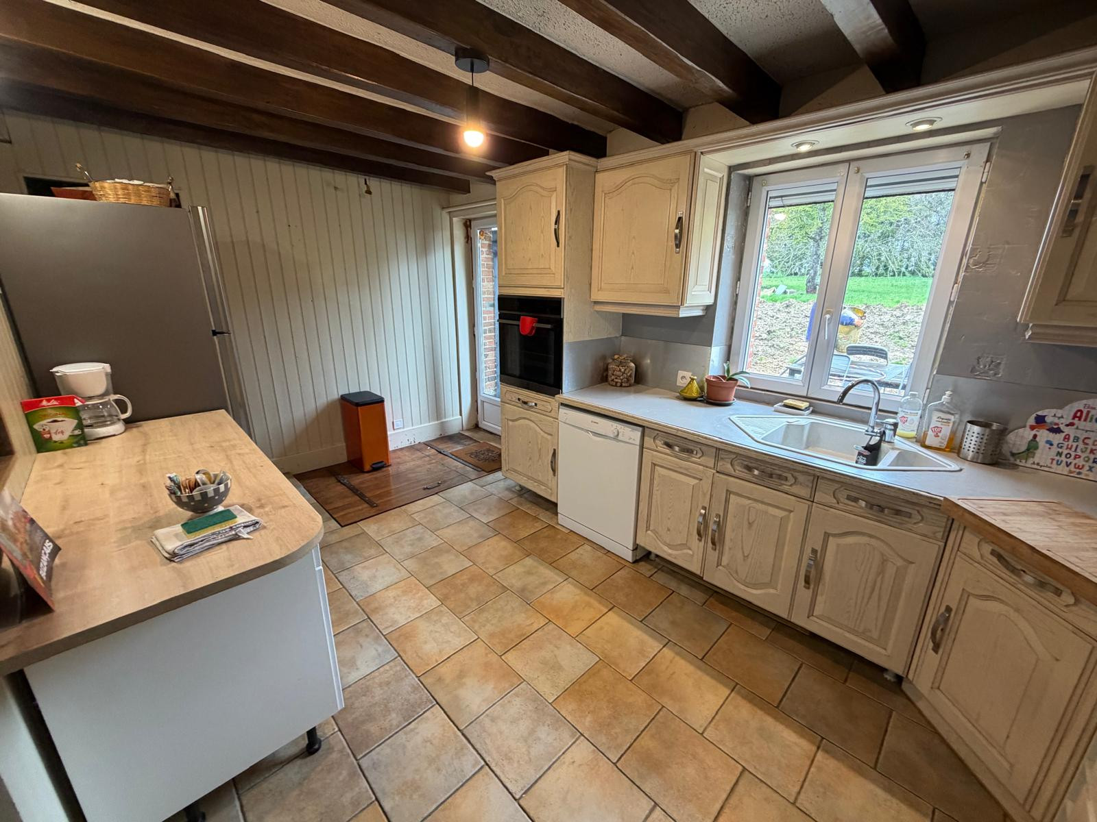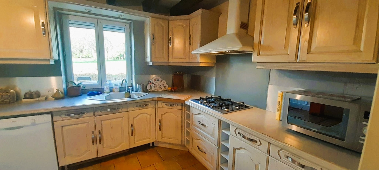 La cuisine américaine est entièrement équipée, avec lave-vaisselle, four, micro-ondes et tout le nécessaire pour préparer de délicieux repas en famille. Vous pourrez également profiter du barbecue et du mobilier de jardin pour des moments de convivialité en extérieur.