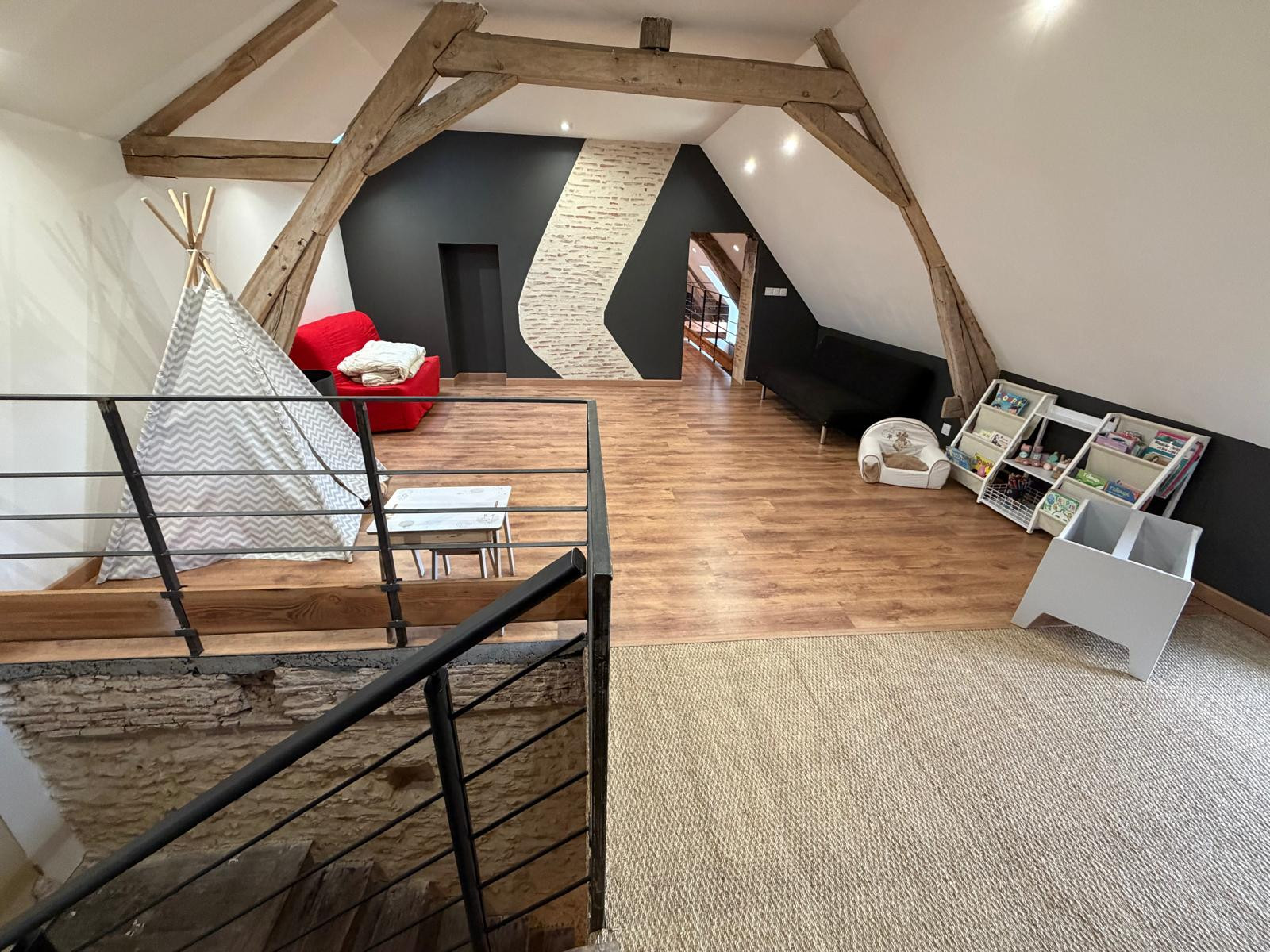 Cette spacieuse propriété offre un hébergement confortable pour 7 personnes, avec 2 chambres aménagées avec soin et 1 mezzanine. Les voyageurs apprécieront la diversité des couchages : un lit king size, un lit double, un lit individuel, un canapé-lit et un lit d'appoint, garantissant un repos optimal pour chacun.