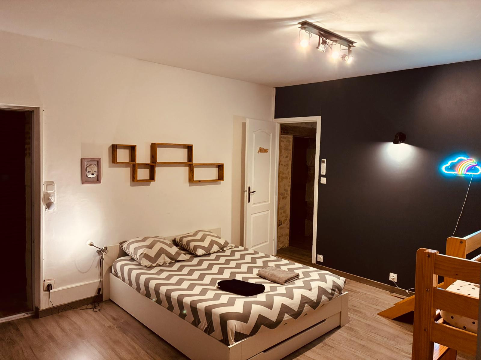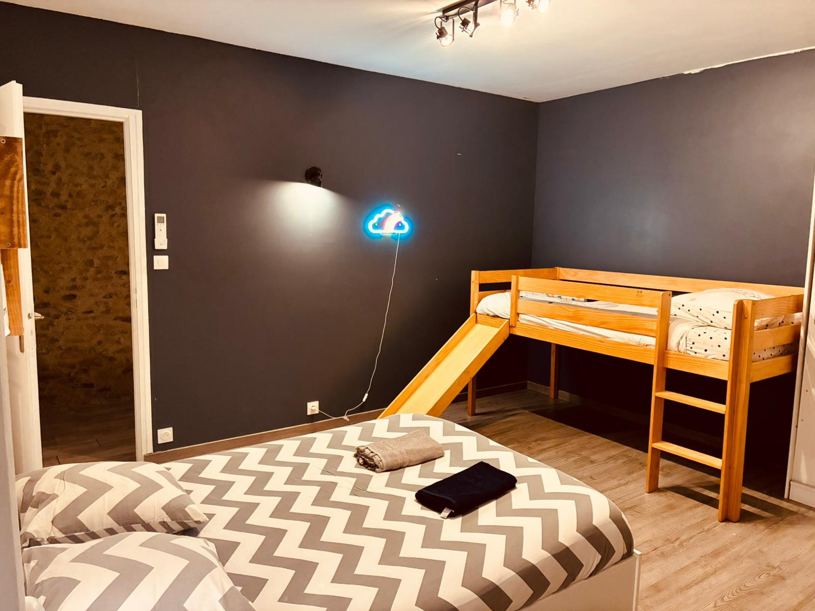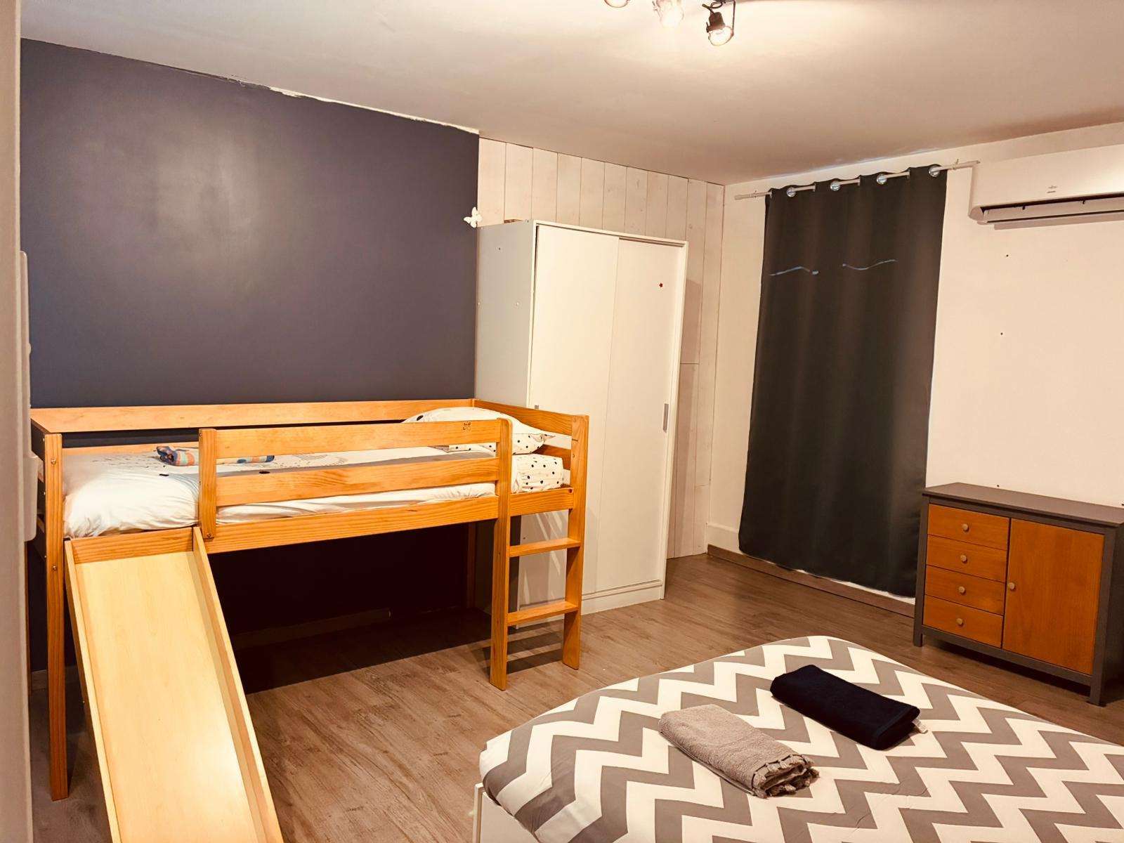 Avec ses 4 chambres et 2 salles de bains, la maison peut accueillir confortablement jusqu'à 8 personnes. Les chambres sont spacieuses et lumineuses, certaines avec des lits doubles, d'autres avec des lits superposés, pour s'adapter à tous les besoins.