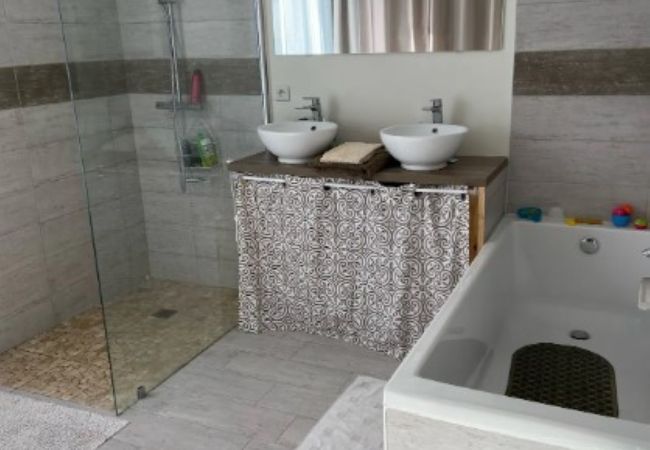 Avec ses 4 chambres et 2 salles de bains, la maison peut accueillir confortablement jusqu'à 8 personnes. Les chambres sont spacieuses et lumineuses, certaines avec des lits doubles, d'autres avec des lits superposés, pour s'adapter à tous les besoins.