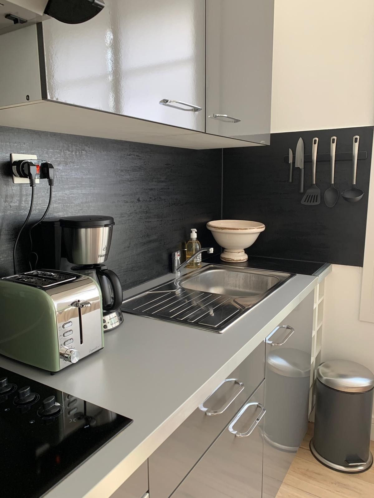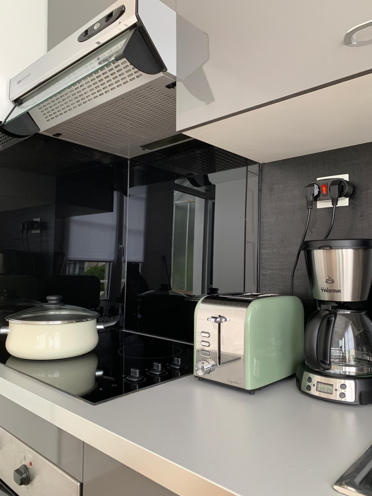 Dans la cuisine toute équipée, vous retrouverez un grand frigo avec congélateur, un lave-vaisselle, un four, une plaque induction, une machine à café Senseo, une bouilloire et un micro-onde. Vous trouverez également un lave-linge dans la salle d'eau.