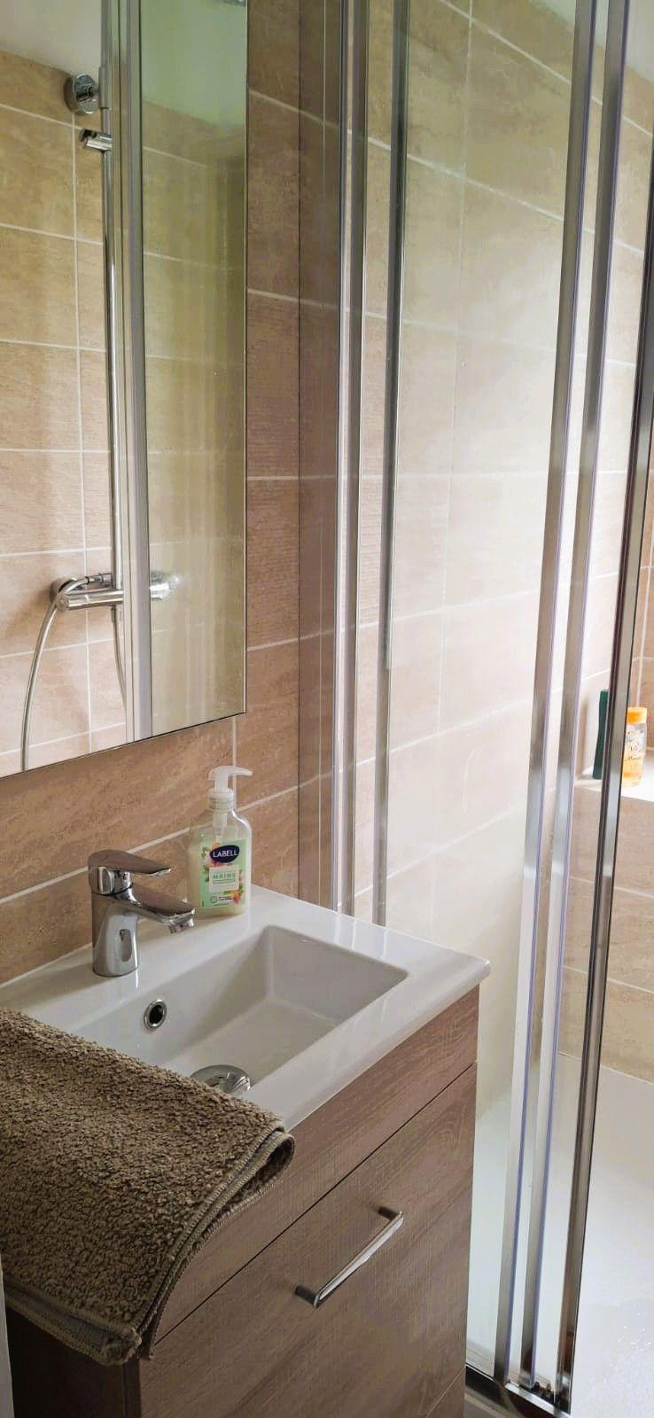 L'appartement dispose d'une chambre confortable avec un lit double et un lit individuel, permettant d'accueillir jusqu'à 3 personnes. La salle de bain avec douche répondra à tous vos besoins de confort et de praticité.