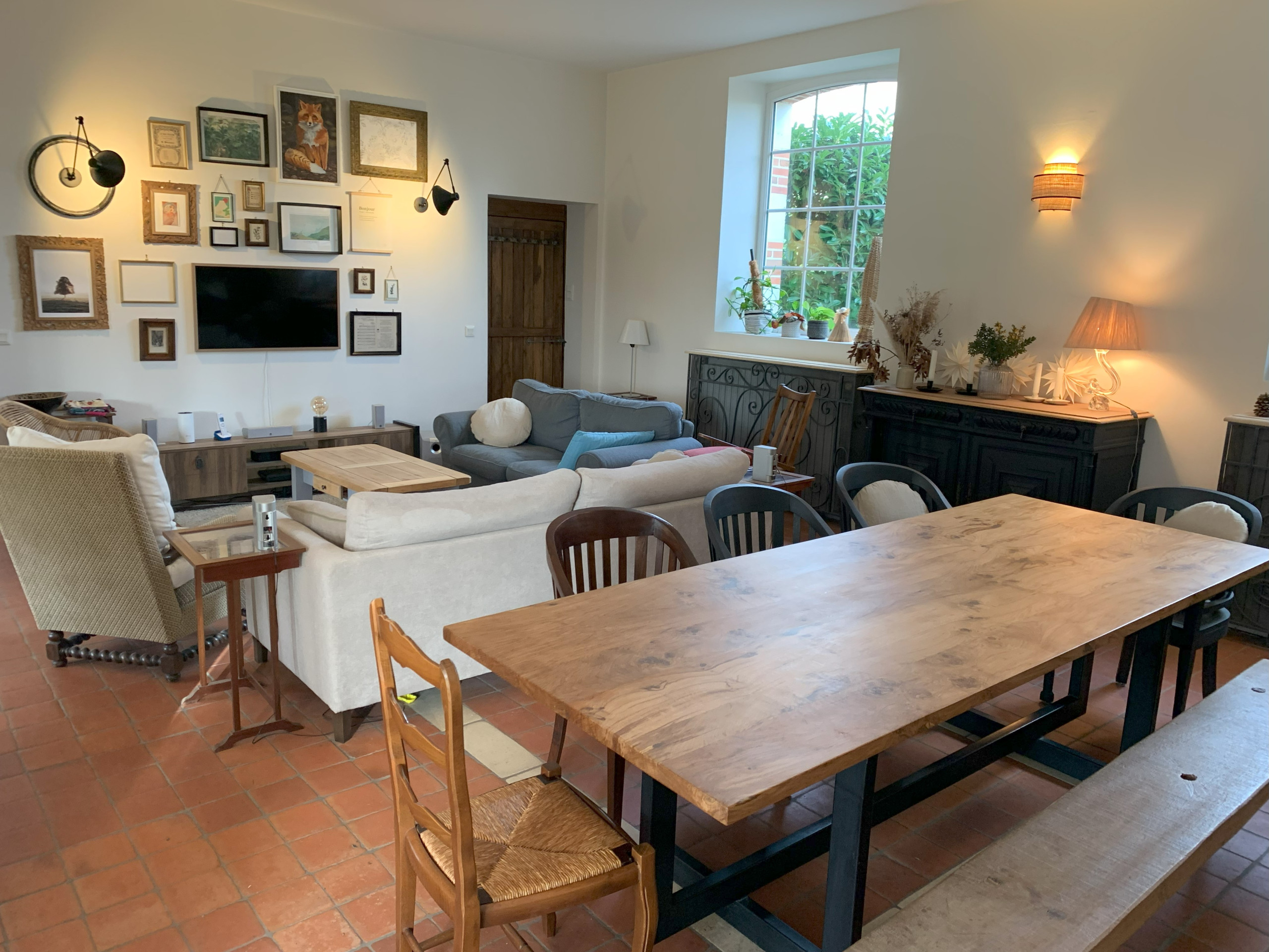 Le grand salon salle à manger vous offre un espace chaleureux pour des moments conviviaux en famille . Un petit salon, équipé d’une bibliothèque de jeux de société pour tous les âges, attend vos après-midi calmes et vos soirées reposantes. Pendant la saison fraîche, deux poêles viennent réchauffer vos soirées.
