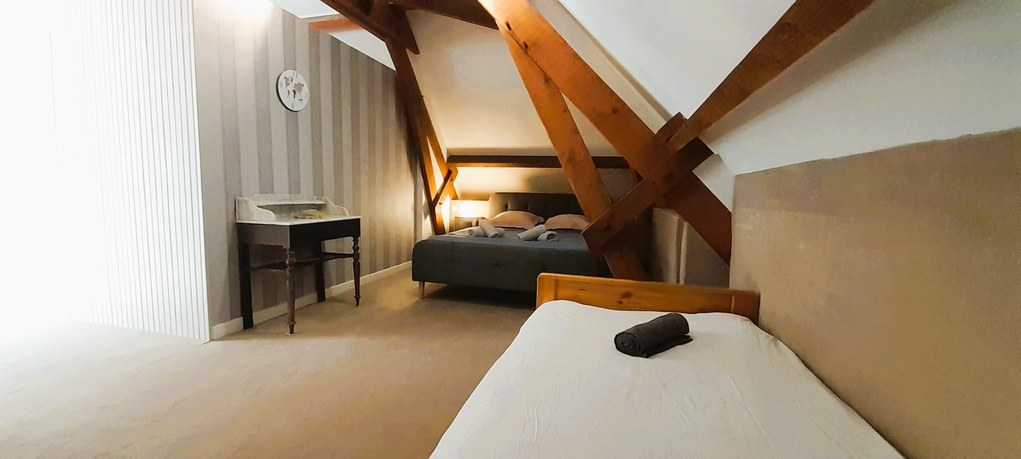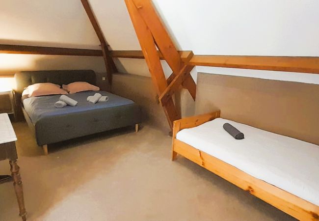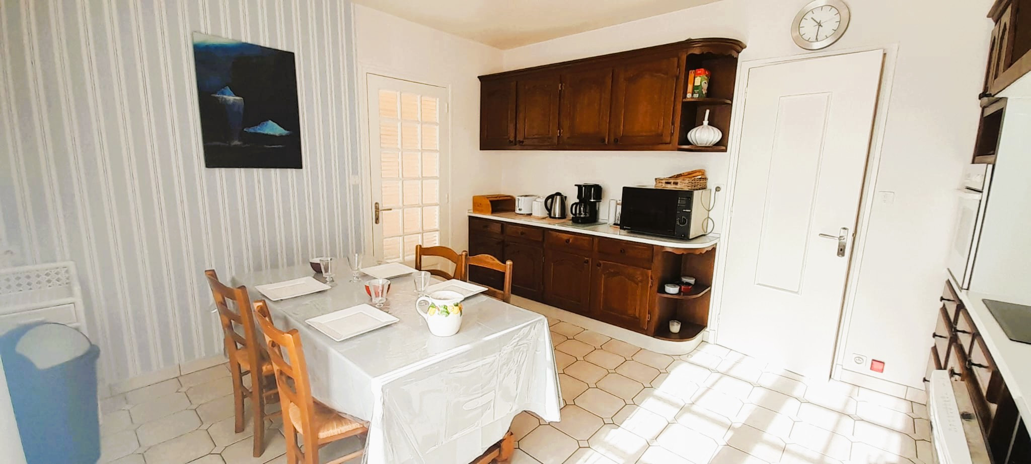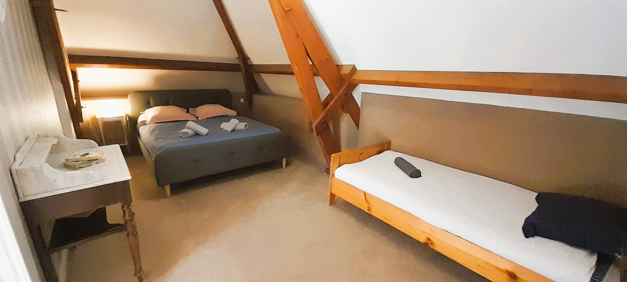 Cette maison confortable de 200m² offre un cadre idéal pour des séjours détendus. Vous disposez de 4 chambres accueillantes avec un total de 7 couchages : 3 lits doubles et 4 lits individuels, permettant un hébergement flexible jusqu'à 10 personnes.