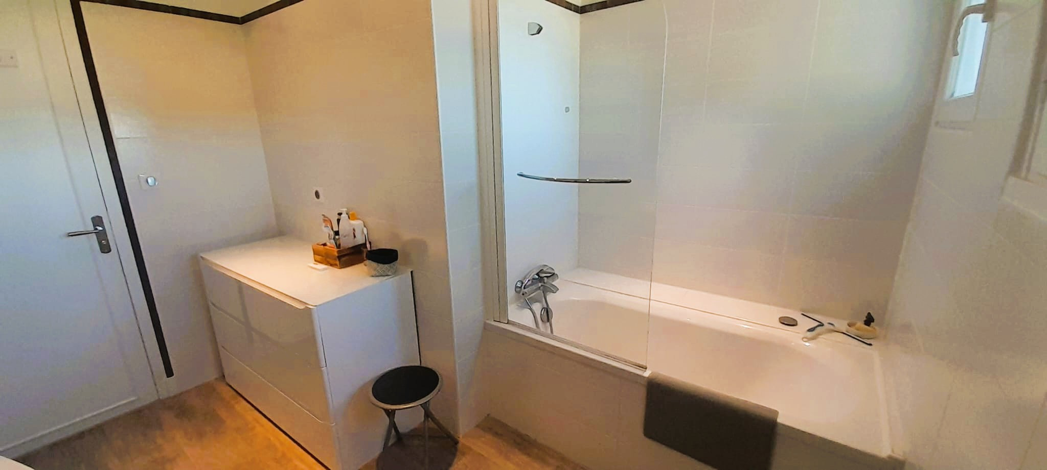 La maison dispose de 2 salles de bains : l'une avec une douche et l'autre avec une baignoire, offrant tout le confort nécessaire. Le WiFi vous permet de rester connecté.