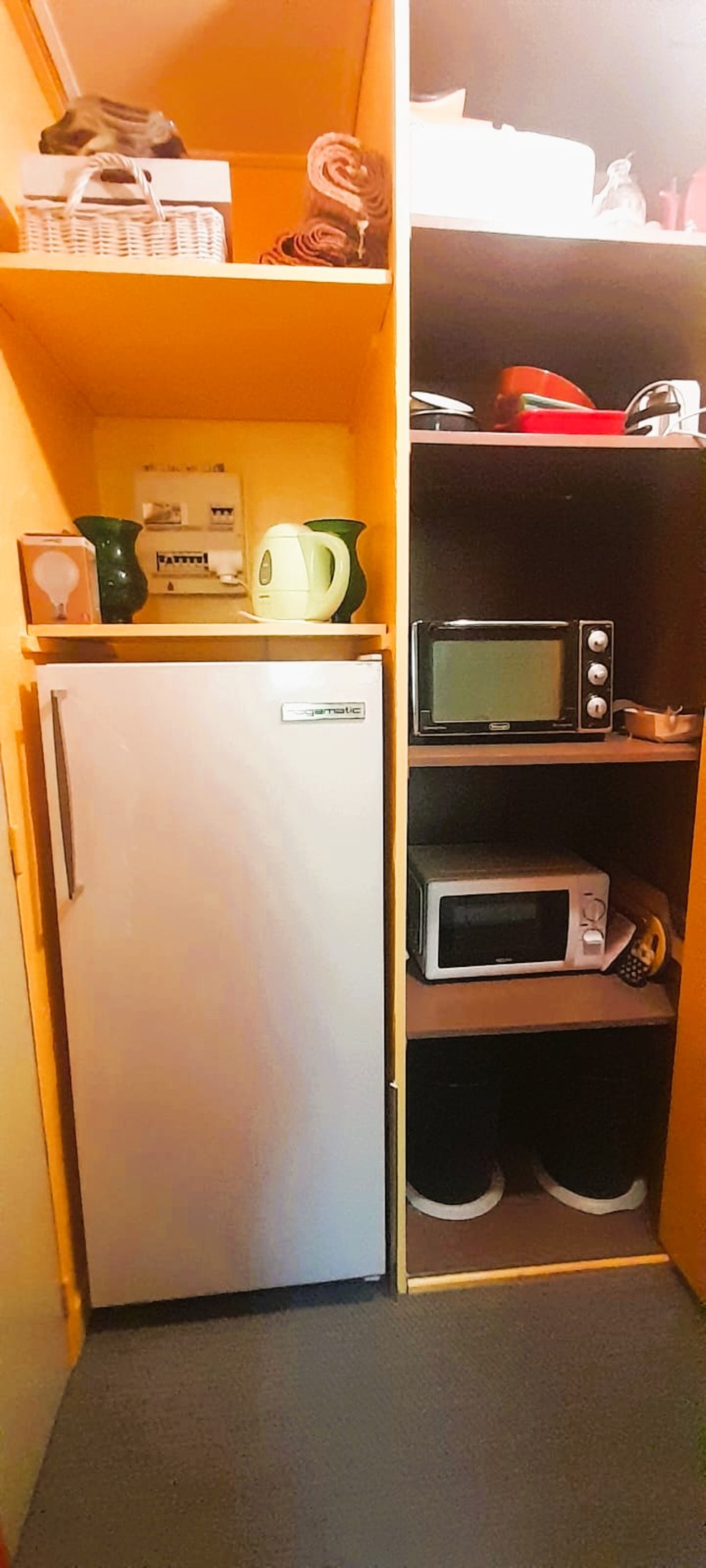 Ce petit nid douillet pour deux personnes dispose d’un lit double escamotable (lit armoire), que vous pourrez ouvrir le soir pour profiter d’un vrai couchage confortable, et refermer en journée pour agrandir votre espace salon. Le chalet est également équipé d’une kitchenette fonctionnelle, d’une salle de bain avec douche et WC, ainsi que du wifi gratuit pour rester connectés si besoin.