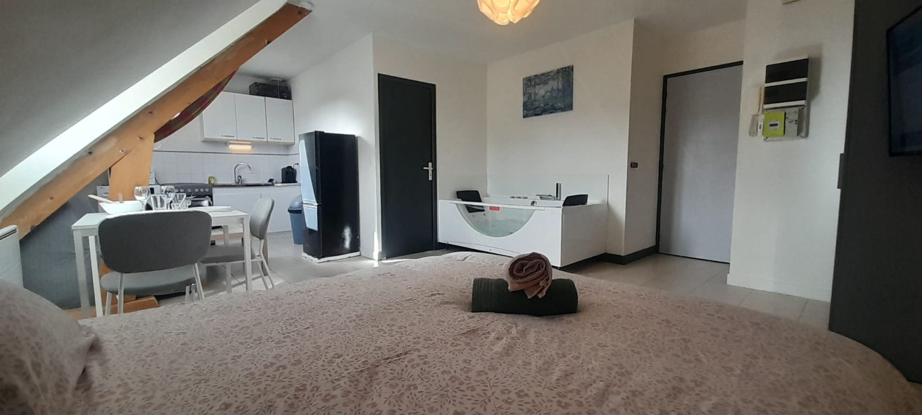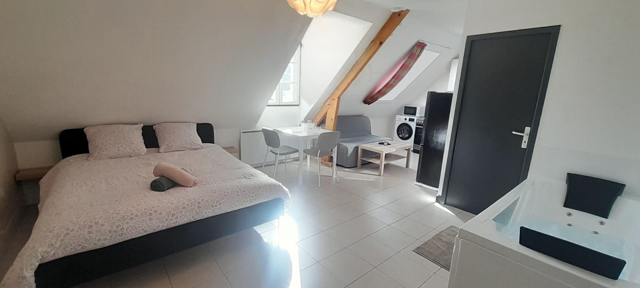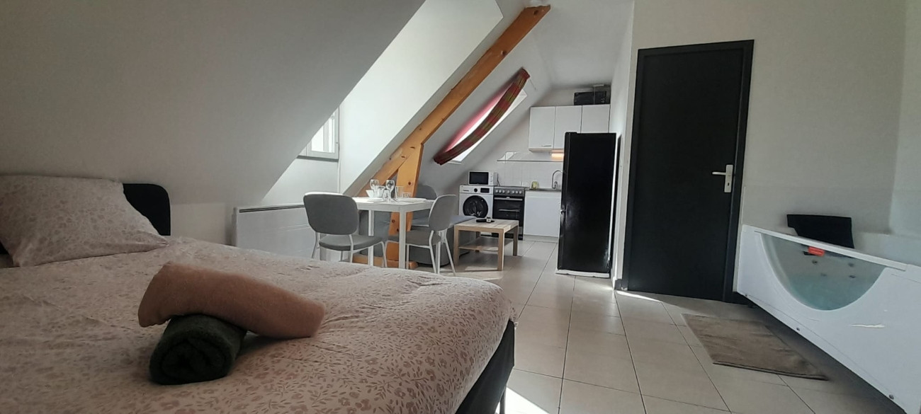La pièce de vie dispose de deux couchages confortables : un lit queen size et un canapé-lit double, permettant d'accueillir jusqu'à 4 personnes. La salle de bain avec douche répondra à tous vos besoins de bien-être et de fraîcheur.
