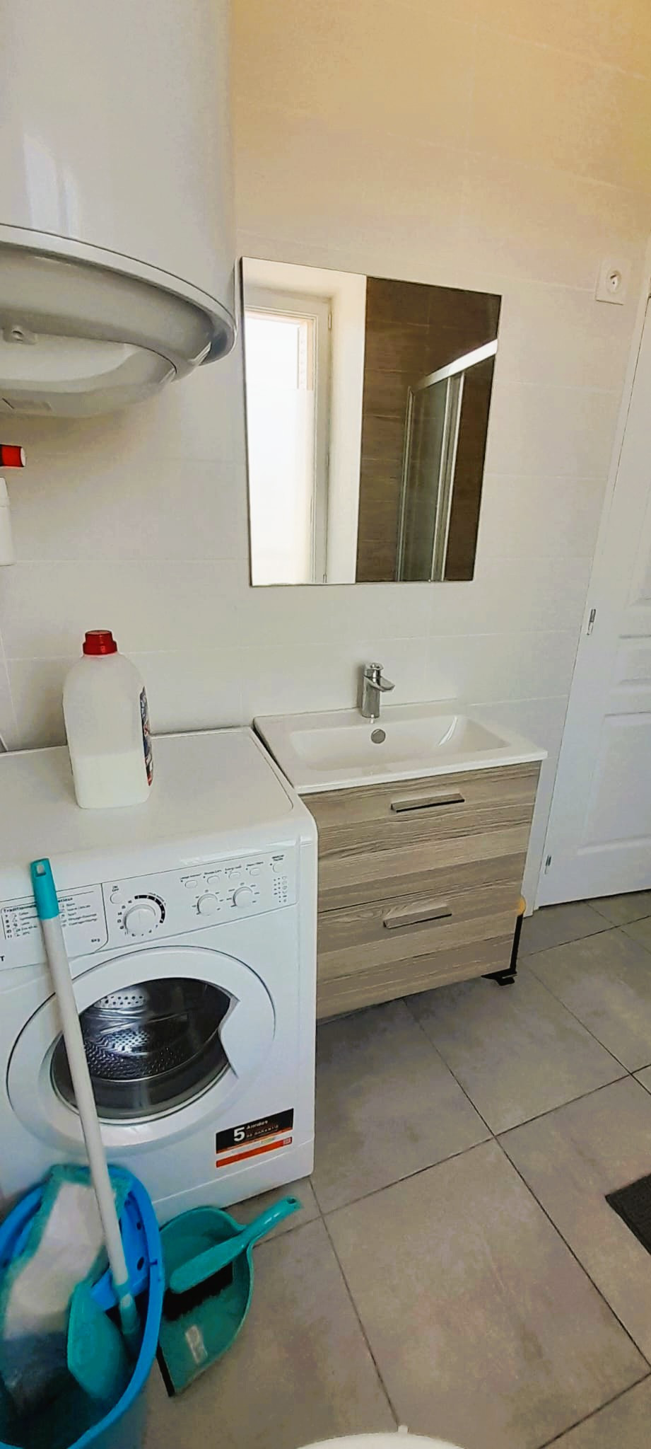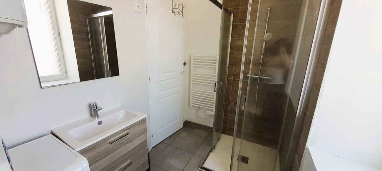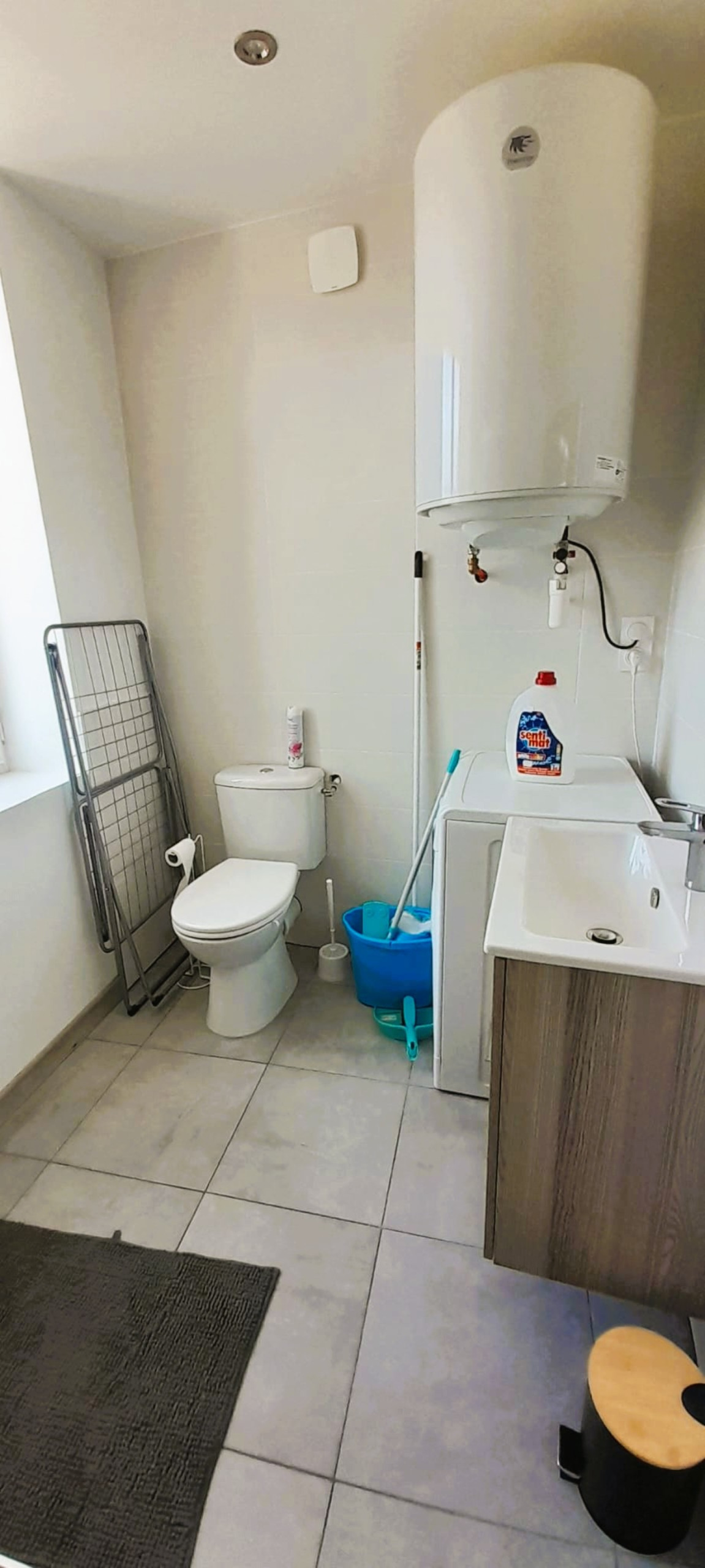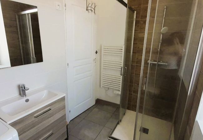 Le logement dispose d'une salle de bain équipée d'une douche pour votre bien-être après une journée de travail. Un lavabo et des WC